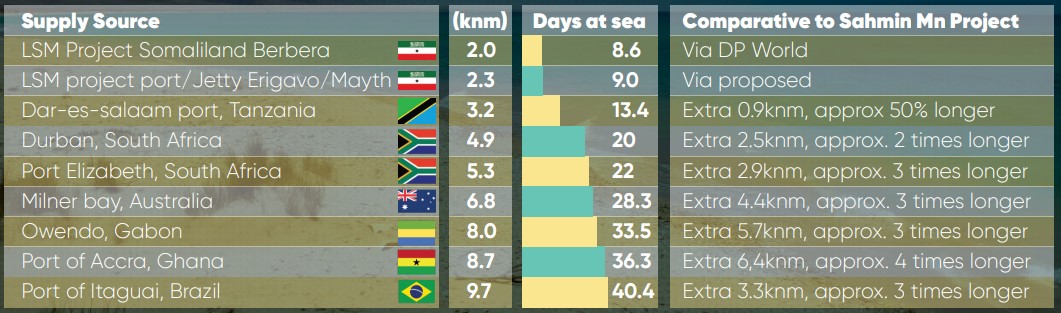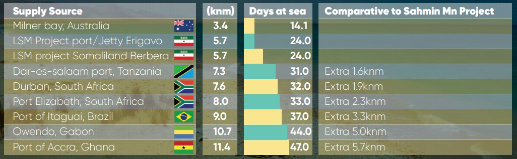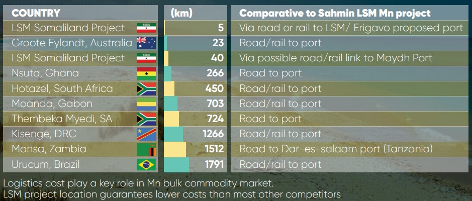 Summary: Sahmin Project Somaliland logistics costs are appreciably cheaper for all potential buyers